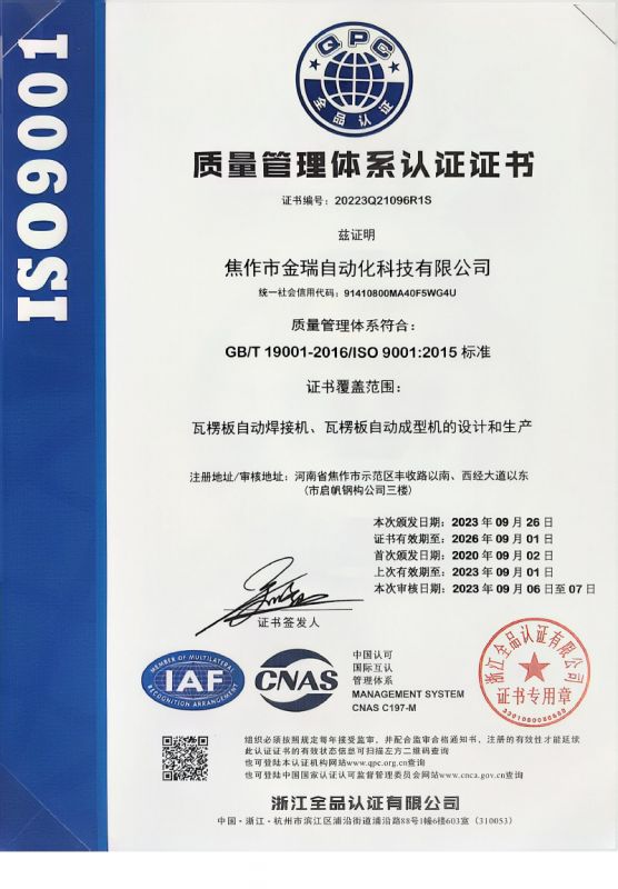 質量管理體系認證證書