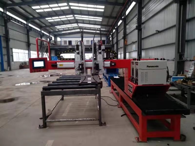 掛車生產(chǎn)過程中,車廂門因量大、工序復雜、焊接難度高,制約著生產(chǎn)產(chǎn)量。金瑞公司在原單槍焊接工藝基礎(chǔ)上,研發(fā)出雙槍自動化焊接設(shè)備。該設(shè)備立足于自動化生產(chǎn)線布置,從起槍、焊接、旋轉(zhuǎn)、收槍、回位,實行全自動編程控制,一臺設(shè)備相當于兩臺設(shè)備生產(chǎn)效率,避免了焊接生產(chǎn)中活件翻轉(zhuǎn)工序,勞動效率提高兩倍以上。
